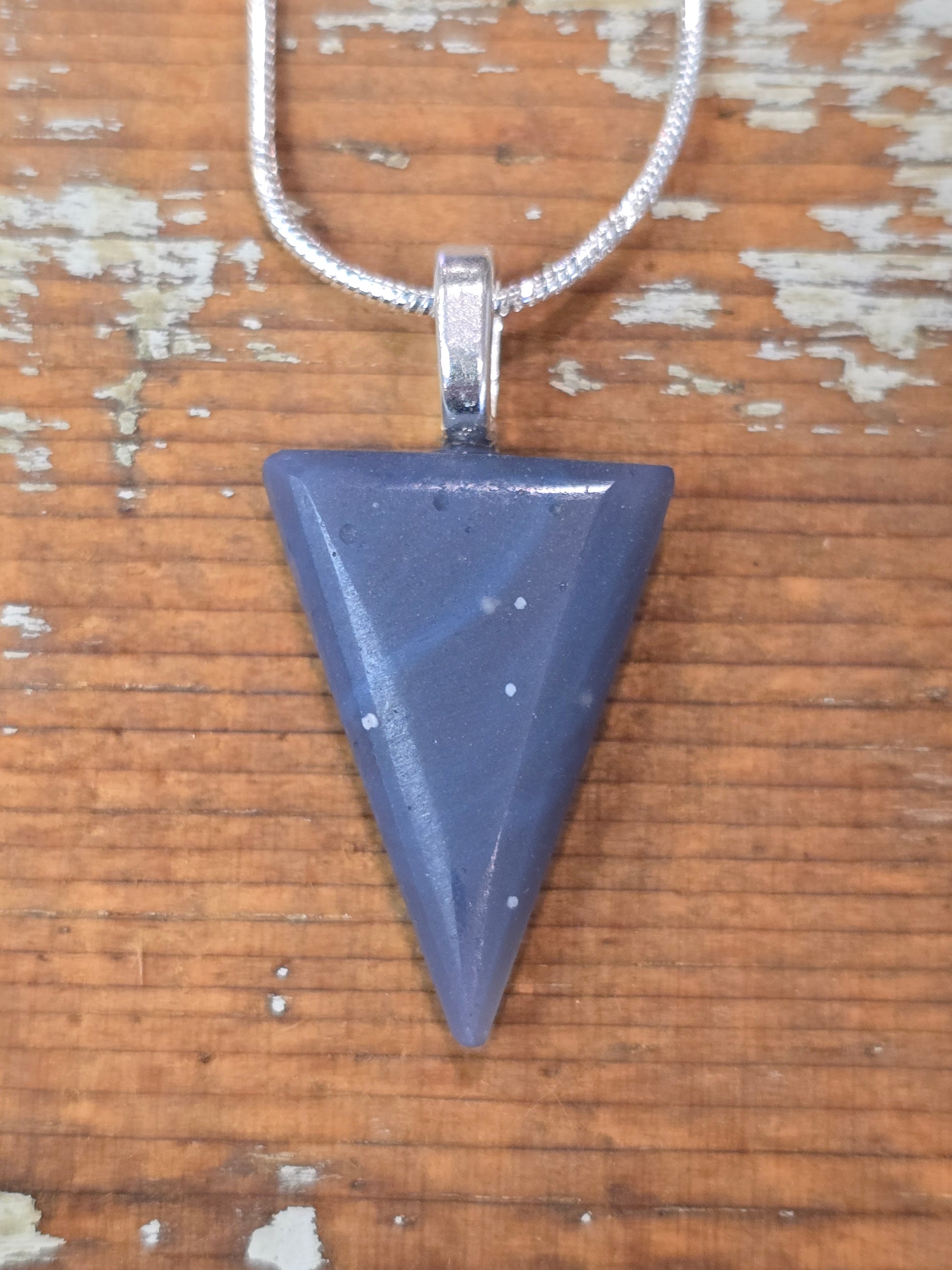 Discover the timeless elegance of this striking triangular Leland Blue pendant handcrafted by Scot and Jen. Featuring the distinctive deep blue hues characteristic of authentic Leland stone, this geometric design makes a bold statement piece for any collection. Each pendant is uniquely shaped and colored, showcasing the natural beauty of this rare Michigan mineral. Perfect for those who appreciate artisan craftsmanship and one-of-a-kind jewelry that tells a story. Wear a piece of authentic Great Lakes heritage with pride.